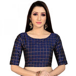 Generic Women's Brocade, Inner-Cotton Full Stitched Padded Blouse (Navy Blue ).