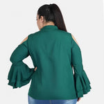 Generic Women's Casual Bell Sleeve Solid Green Top