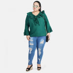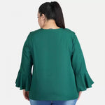Generic Women's Casual Bell Sleeve Solid Green Top
