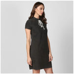 Women's Denim Solid Short Sleeve Above Knee Dress