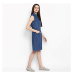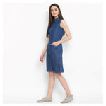 Ranili Denim Solid Sleeveless Above Knee Dress
