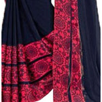 Georgette Digital Saree With Blouse-Navy Blue. Don't Change to fit the fashion change the Fashion to fit you.
