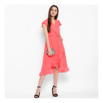 Women's Polyester Ruffled Cap Sleeve Below Knee Dress