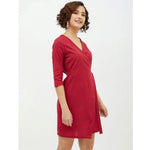 Women's Cotton Wrap 3-4th Sleeves Above Knee Dress