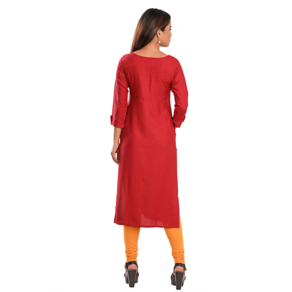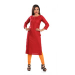 Casual 3/4th Sleeve Embroidered Cotton Kurti (Maroon)