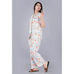 Women's Casual Half Sleeve Printed Viscose Rayon Shirt With Pyjama Pant Night Suit Set