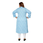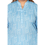 Casual 3/4th Sleeve Floral Printed Cotton Flex Kurti (Blue)