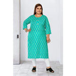 Women's Casual 3/4th Sleeve Ikkat Printed Pure Cotton Straight Kurti