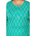 Casual 3/4th Sleeve Embroidered Cotton Kurti (Dark Green)