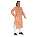 Women's Casual 3/4th Sleeve Rayon Golden Foil Printed Straight Kurti