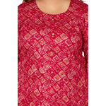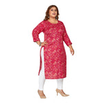 Casual 3/4th Sleeve Chikan Embroidery Cotton Kurti (Majenta)