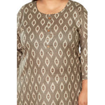 Women's Casual 3/4th Sleeve Pure Cotton Ikkat Printed Straight Kurti