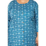 Casual 3/4th Sleeve Floral Printed Cotton Flex Kurti (Blue)