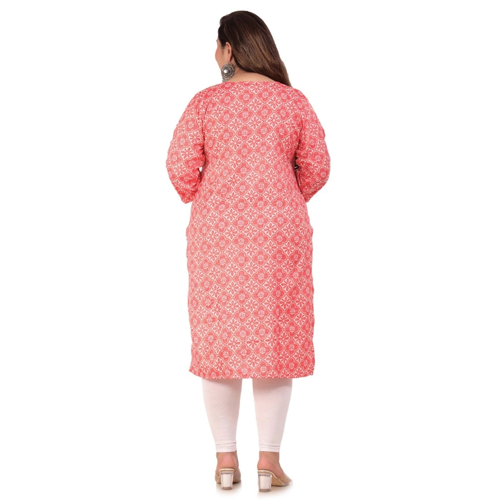 Casual 3/4th Sleeve Chikan Embroidery Cotton Kurti (Majenta)