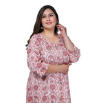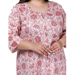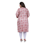 Casual 3/4th Sleeve Chikan Embroidery Cotton Kurti (Majenta)