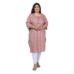 Casual 3/4th Sleeve Chikan Embroidery Cotton Kurti (Majenta)