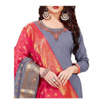 Generic Women's Slub Cotton Unstitched Salwar-Suit Material With Dupatta (Grey, 2 Mtr). <br>Top Fabric: Slub Cotton, Bottom Fabric: Cotton, Dupatta Fabric: Banarasi. <br>Top Color: Grey, Bottom Color: Pink, Dupatta Color: Grey Pink. <br>Top Length: 2 Mtr, Bottom Length: 2 Mtr, Dupatta Length: 2.20 Mtr. <br> Style: Embroidered<br>Disclaimer: The color of actual product may vary slightly from the images provided due to photographic lighting conditions and difference in screen resolutions.