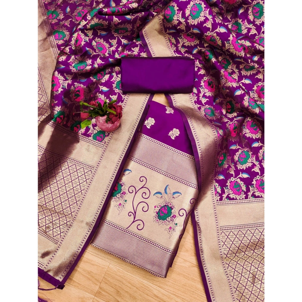 Women's Banarasi Silk Printed Unstitched Salwar Suit Material With Dupatta