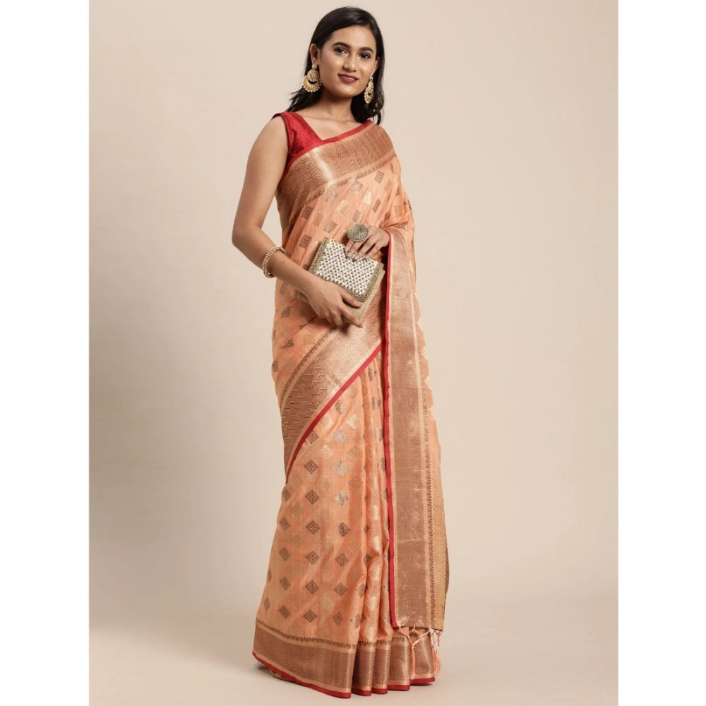 Women's Chanderi Cotton Printed Saree With Unstitched Blouse