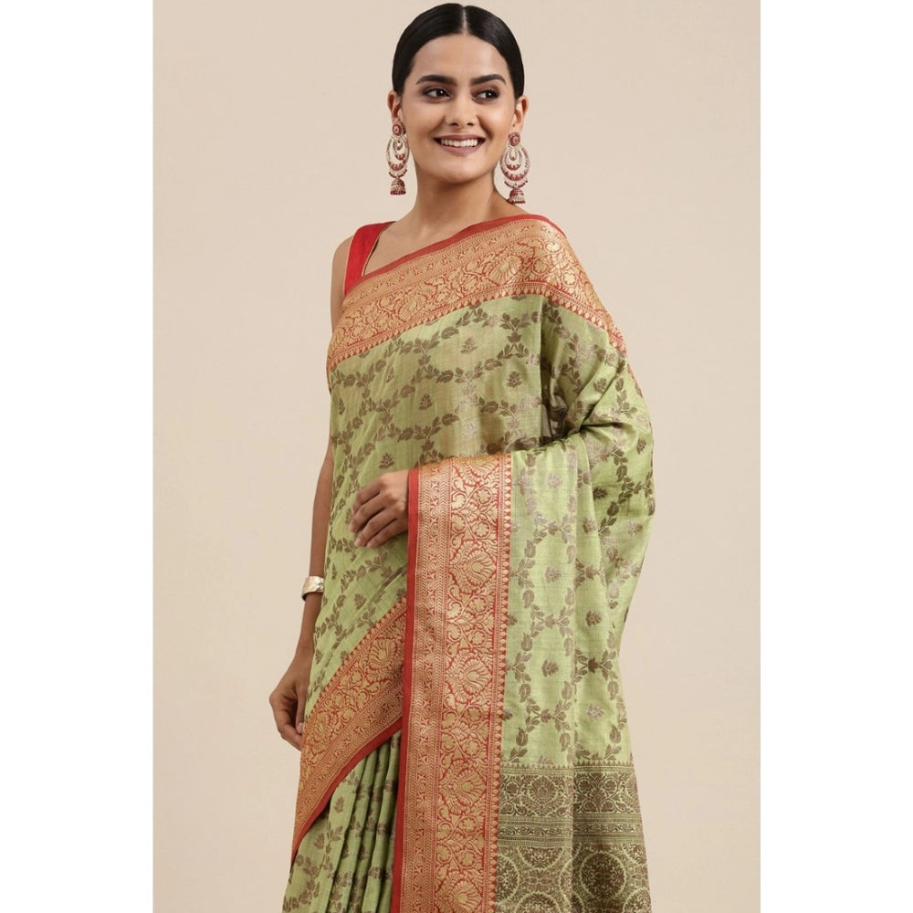 Women's Chanderi Cotton Printed Saree With Unstitched Blouse