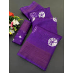 Women's Cotton Blend Printed Saree With Unstitched Blouse