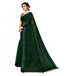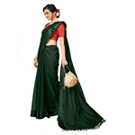 Women's Cotton Blend Stripe Pattern Sarees (Green, 5-6 Mtrs)