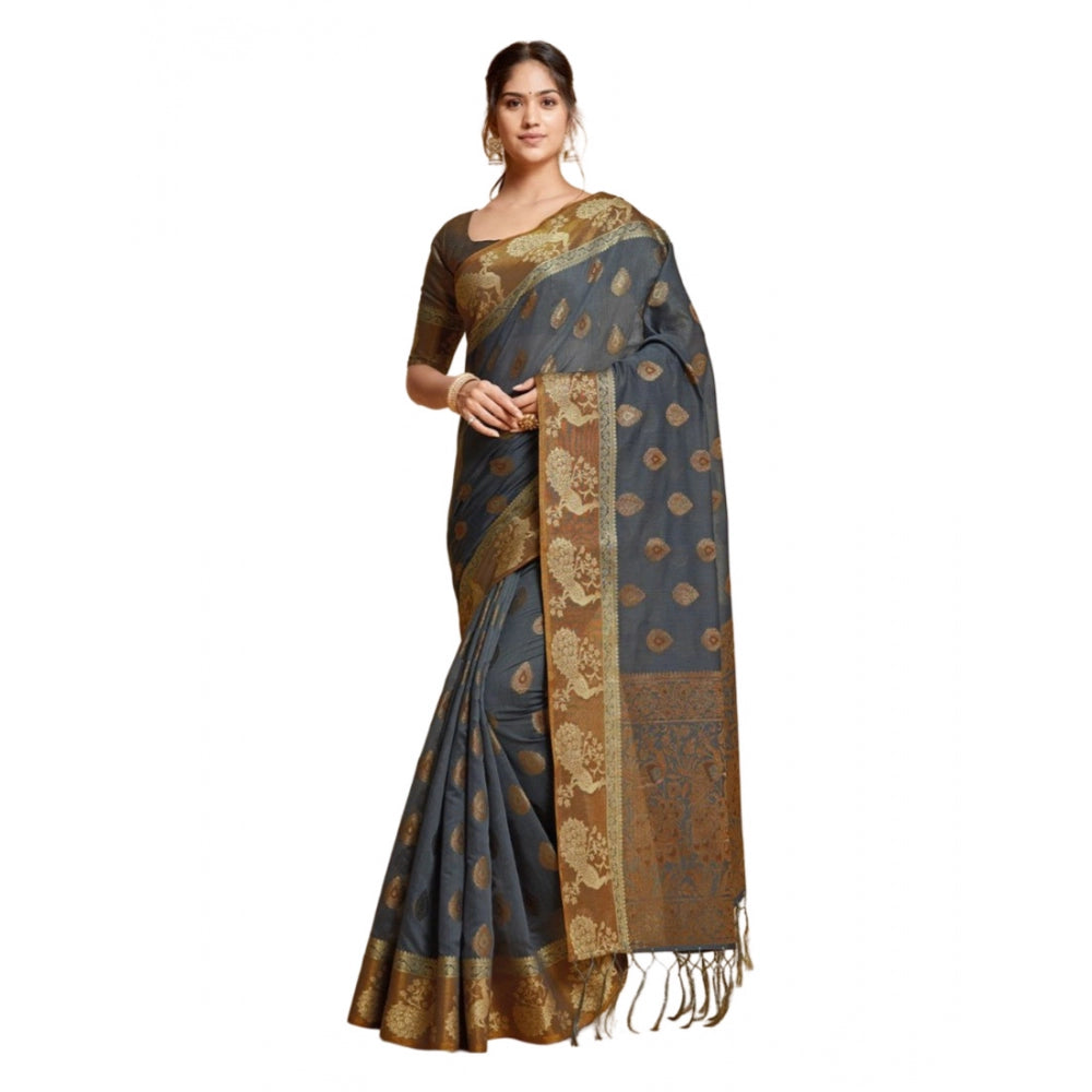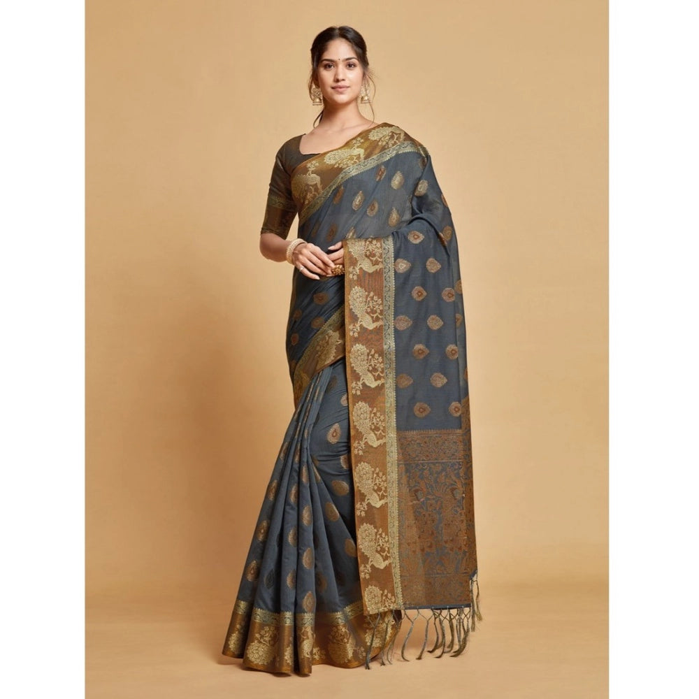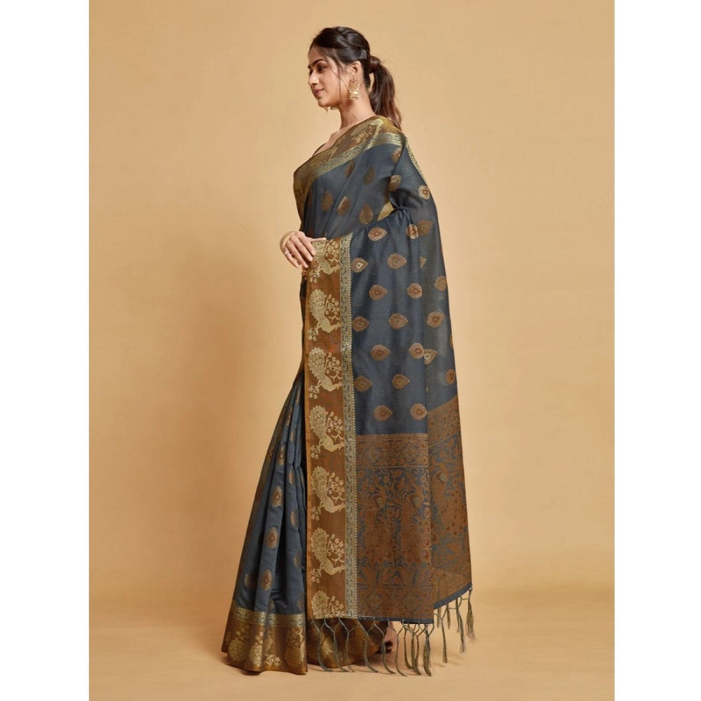 Women's Organza Printed Saree With Unstitched Blouse