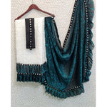 Women's Silk With Mirror Lace Solid Saree With Unstitched Blouse