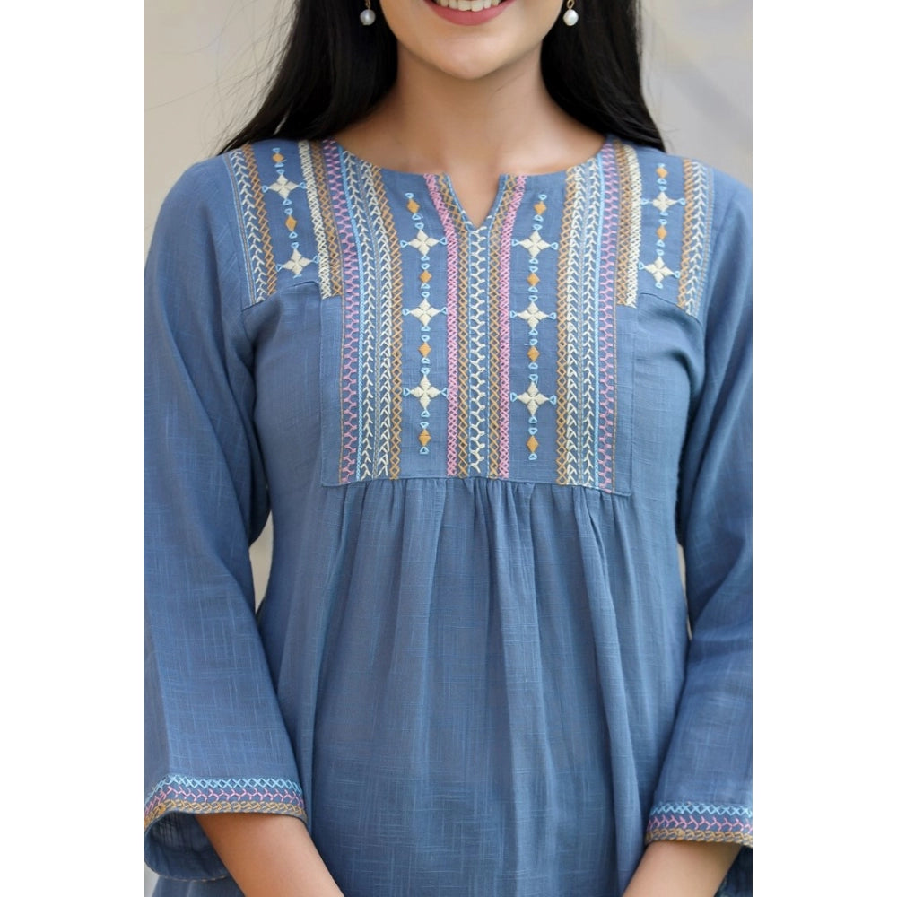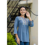 Casual 3/4th Sleeve Embroidered Cotton Kurti (Dark Green)