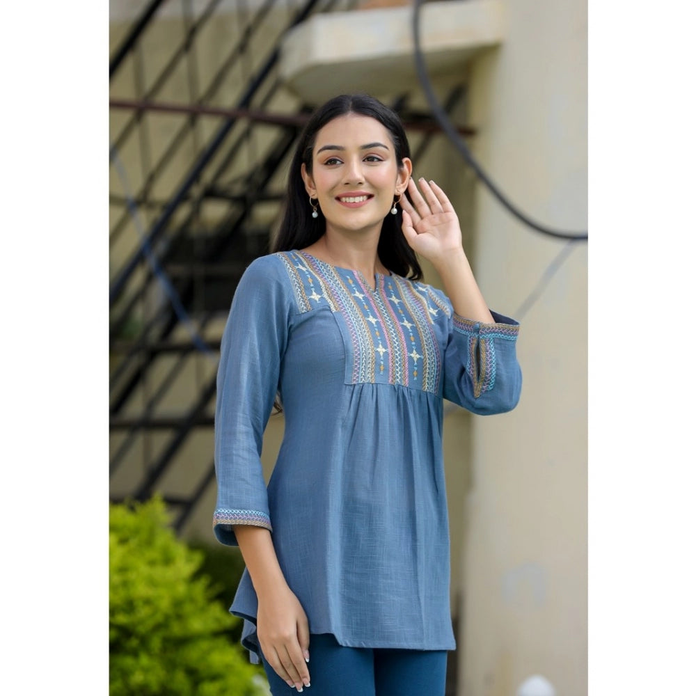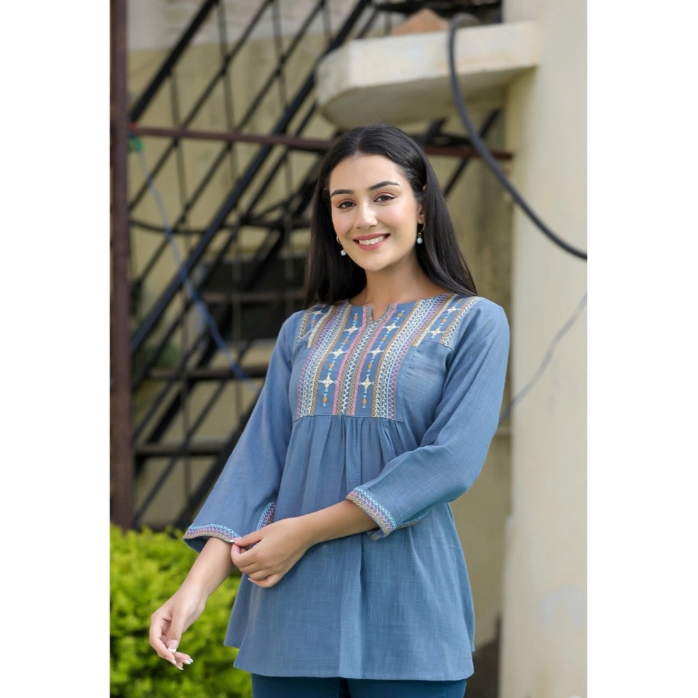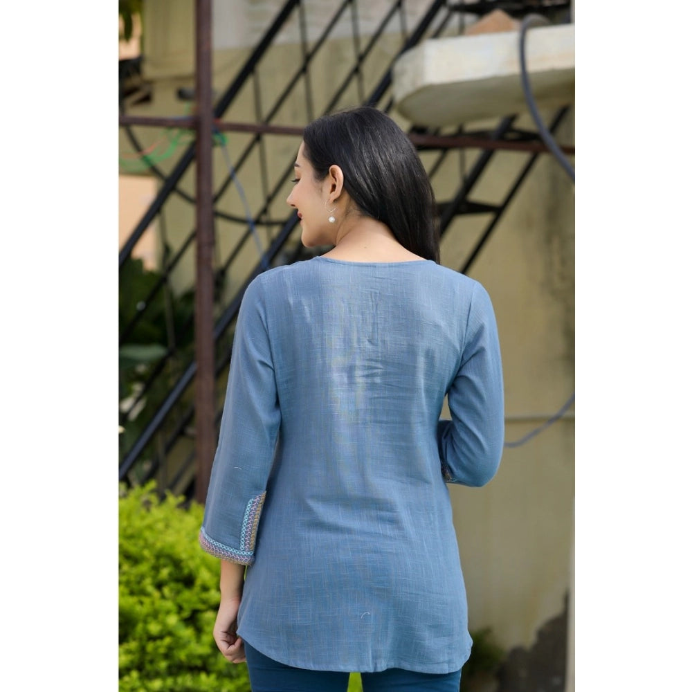 Women's Cotton Embroidered 3/4 Sleeve V-Neck Top