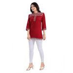 Casual 3/4th Sleeve Embroidered Cotton Kurti (Maroon)