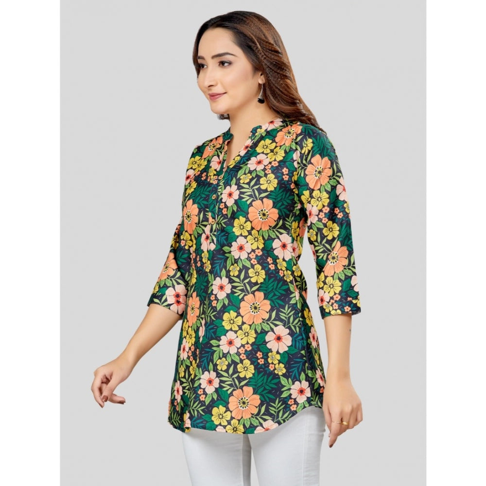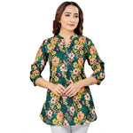 Casual 3/4th Sleeve Floral Printed Cotton Flex Kurti (Blue)