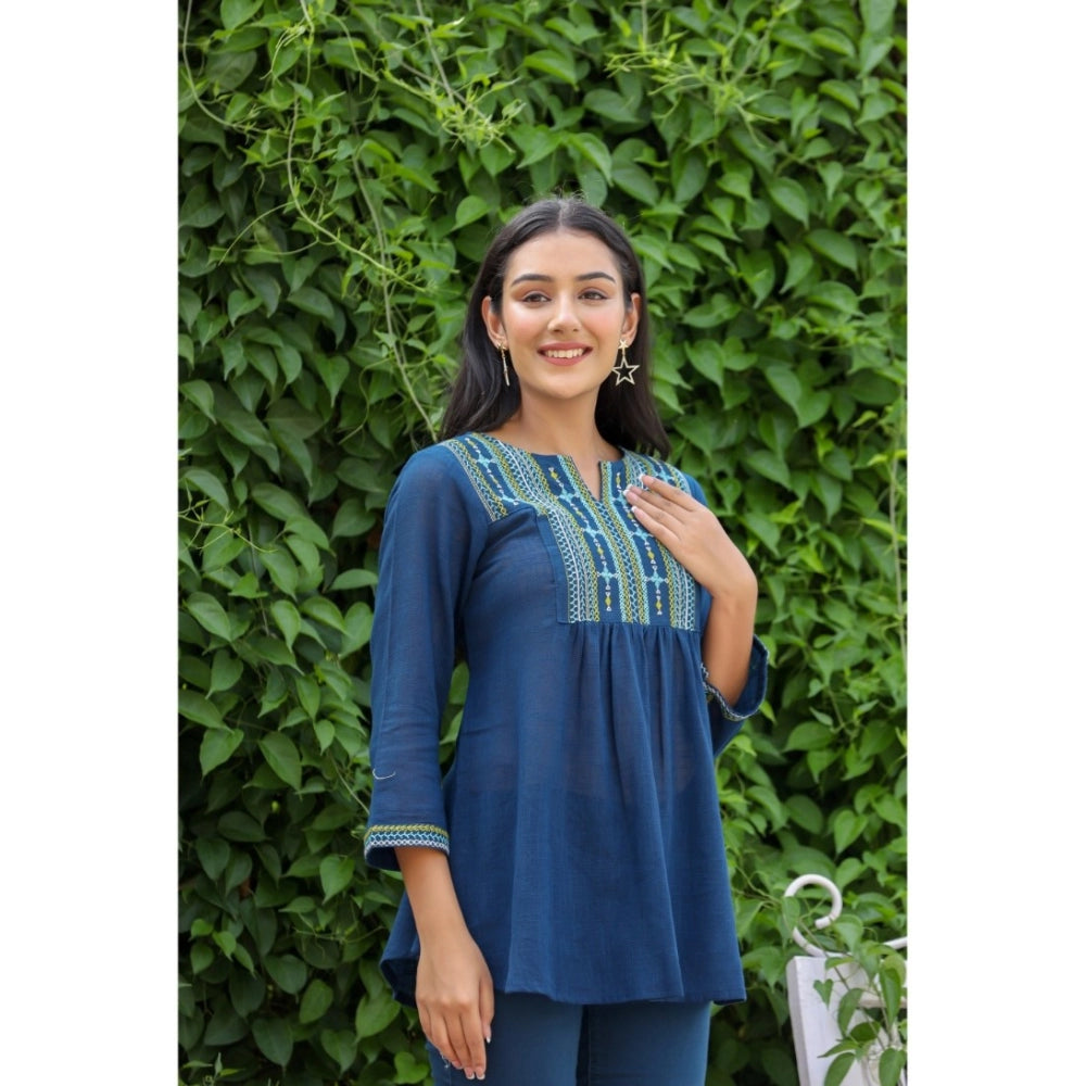 Women's Cotton Embroidered 3/4 Sleeve V-Neck Top