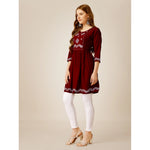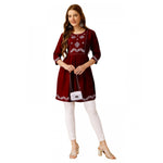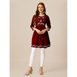 Casual 3/4th Sleeve Embroidered Cotton Kurti (Maroon)