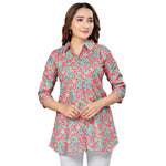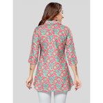 Casual 3/4th Sleeve Floral Printed Cotton Flex Kurti (Blue)
