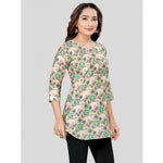 Casual 3/4th Sleeve Floral Printed Cotton Flex Kurti (Blue)