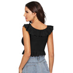 Women's Polyester Solid Sleeveless Ruffle Neck Top