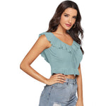Women's Polyester Solid Sleeveless Ruffle Neck Top