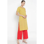 Women's Casual Short Sleeves Floral Printed Cotton & Rayon Kurti Palazzo Set