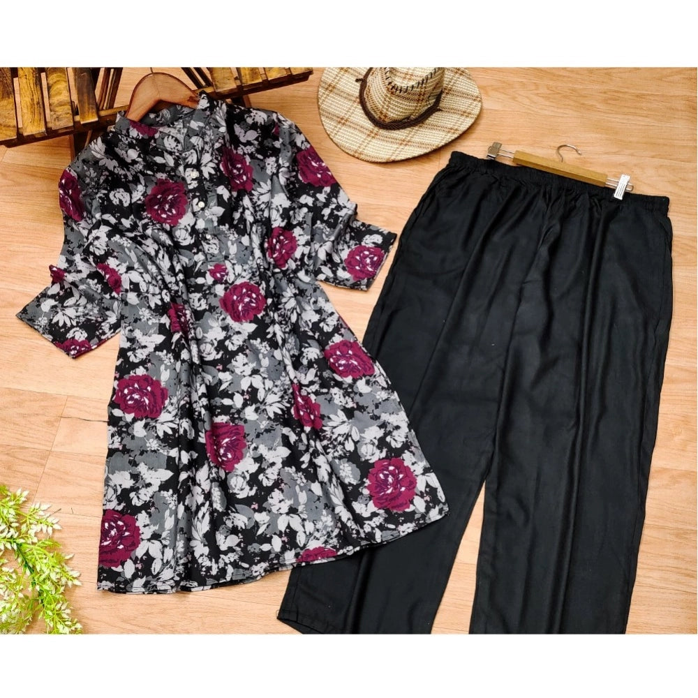 Women's Muslin Printed Kurti With Pant Set