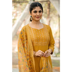 Ranili Rayon Printed Round Neck Kurti With Pant And Dupatta Set